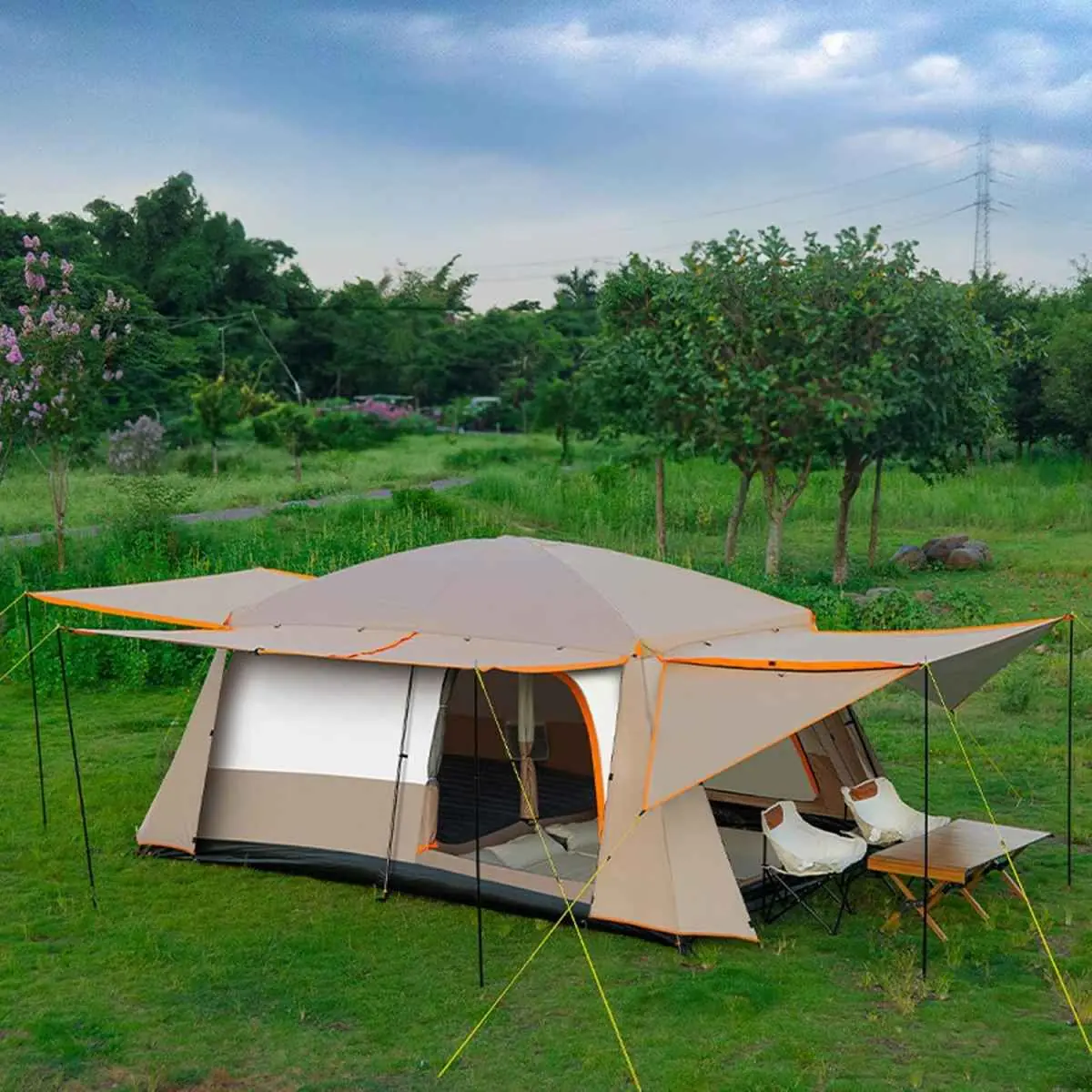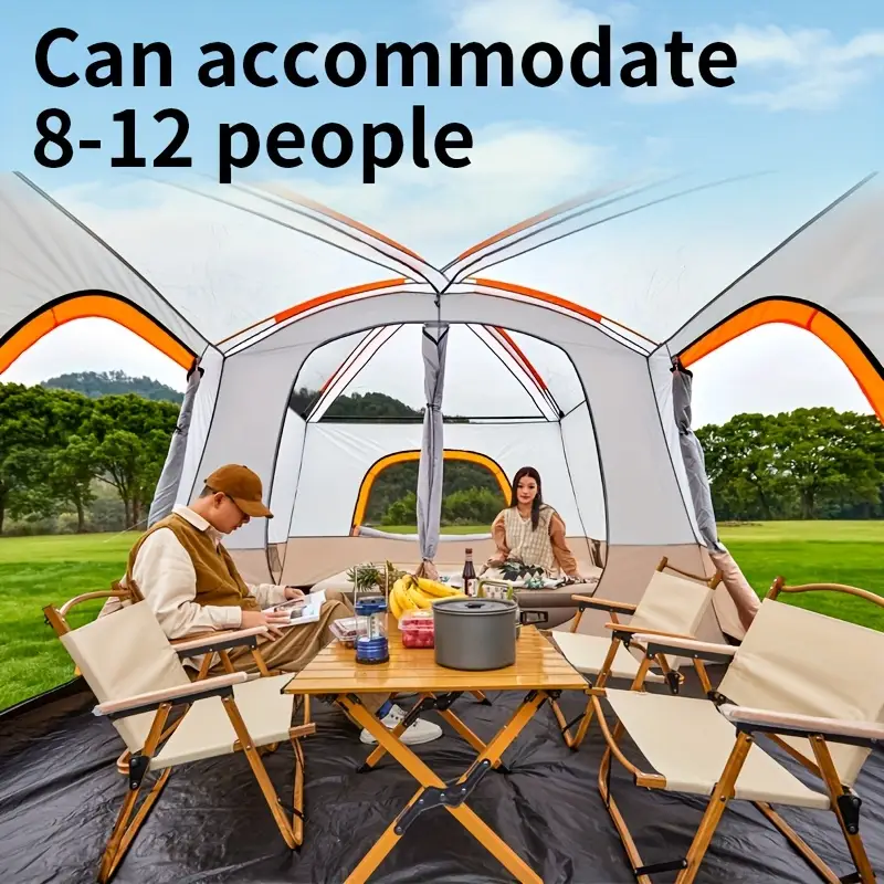 این چادر به اندازه کافی بزرگ است تا بتوانید تشک بادی، میز و صندلی و سایر لوازم کمپینگ خود را به راحتی در آن قرار دهید.