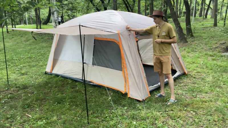 چادر کمپینگ دو پوشش سایبان‌دار دارای سه درب در جلو و یک پنجره در اتاق خواب پشتی می باشد. دو درب کناری چادر به دو حالت استفاده می شود: یا به صورت درب کامل باز می شود یا می توانید پنجره ای که روی این درب ها تعبیه شده  است را به صورت جدا باز کنید بدون باز شدن درب های کناری. درب جلویی چادر نیز دارای توری پشه‌بند با کیفیت عالی است که به شما اجازه می‌دهد با استفاده از دو میله آن را به سایبان تبدیل کنید.